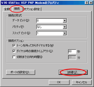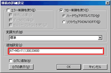 通信モードの変更方法(56kbpsから33.6kbpsへ)