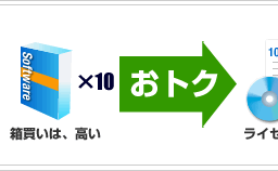 会社などで、まとまった数のソフトウェアを一括購入するなら、ライセンス(マスターCD-ROMと必要な数の「使用許諾」(ライセンス証書)を取得すること)がお得です。