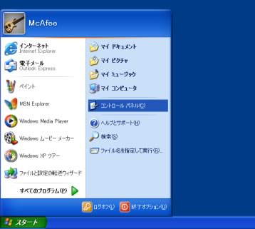Windows XP以外のOSでは[スタート]メニューから[設定]-[コントロールパネル]の順に選択します。 |