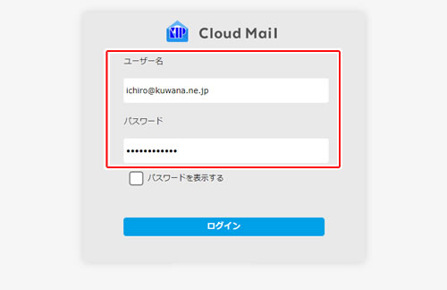 パスワード | 会員登録通知書またはバーチャルMailサービス登録通知書記載のパスワード |