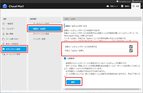 以上で、迷惑メールチェックサービスの設定は終了です。