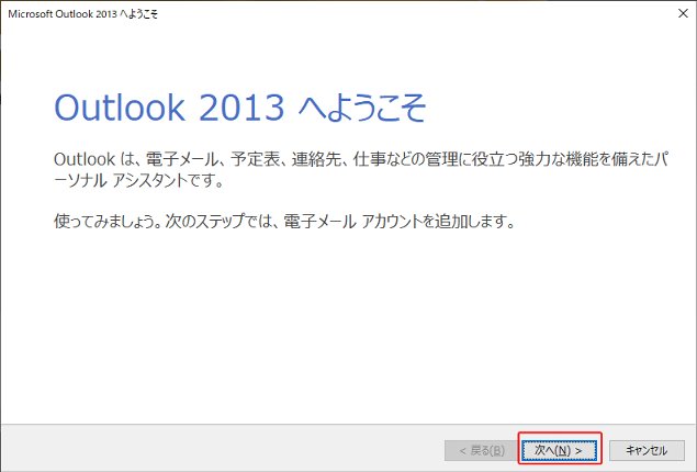 Outlook2013の設定を新規に行う方法をご案内いたします。以下の手順に従って、設定してください。