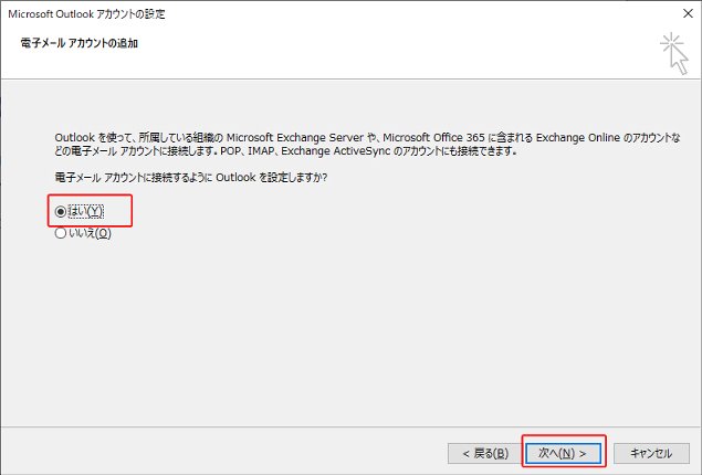3.、[はい]にチェックを入れ、[次へ]をクリックします。