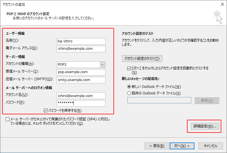 6.以下の内容を入力し、[詳細設定]をクリックします。