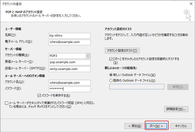 ▼メールソフトの設定-Outlook2013 新規設定方法