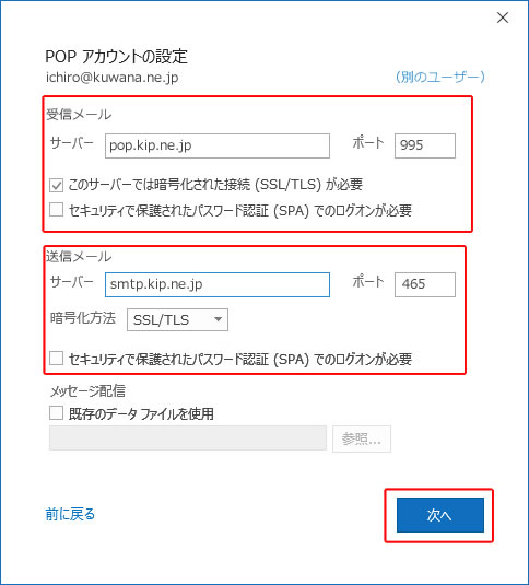▼メールソフトの設定-Outlook バーチャルmailサービス新規設定方法